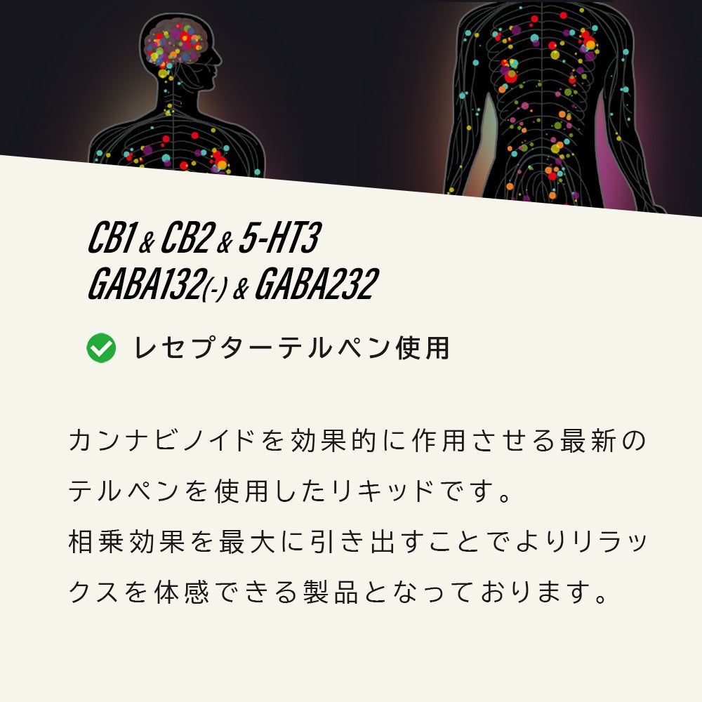 CBN優勢リキッドとなっており、同じく配合にこだわりレセプターテルペンを配合しております。音楽を楽しみたいシーンに使えるよう耳に作用するよう配合やレセプターテルペンにこだわっております。グレープの香りの奥に土臭さを感じることができるリラックス系フレーバになります。